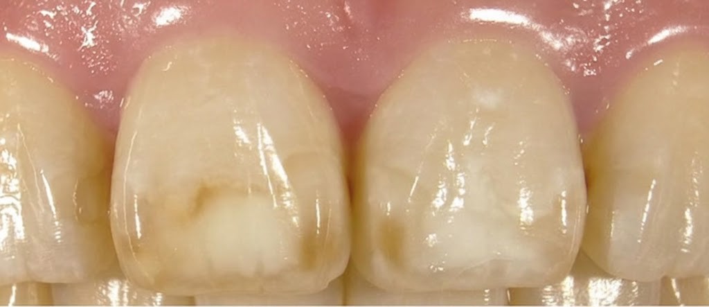 黄色くまだらに見える状態です。 👉 ホワイトスポットよりも、少し深い層に原因があります。