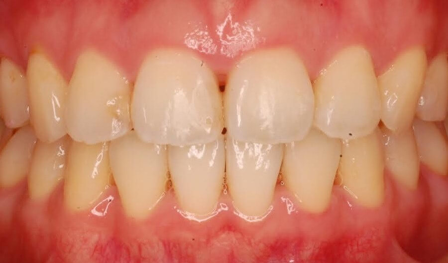 上の歯が下の歯にほとんど覆いかぶさっている状態です。見た目にはほとんど問題ありませんが、噛み締めが強いことから、歯ぎしりや食いしばり、顎関節症を発症するリスクが高まります。