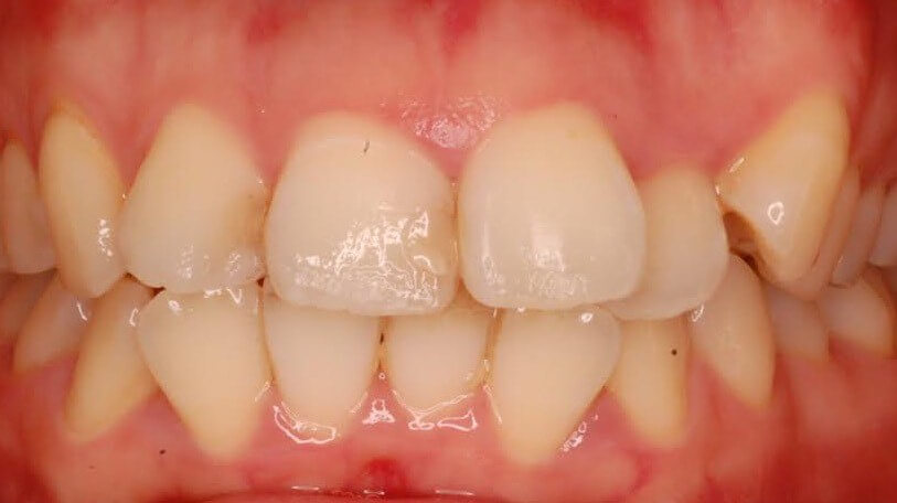 上の前歯が下の前歯より著しく突出しているケースです。遺伝的要因のほか、指しゃぶりや歯の裏側を舌で押す癖があるなどの環境的要因によっても生じます。